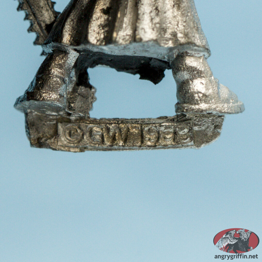 This Imperial Guard Commissar was a Mark Copplestone sculpt. There’s no year on the tab.
