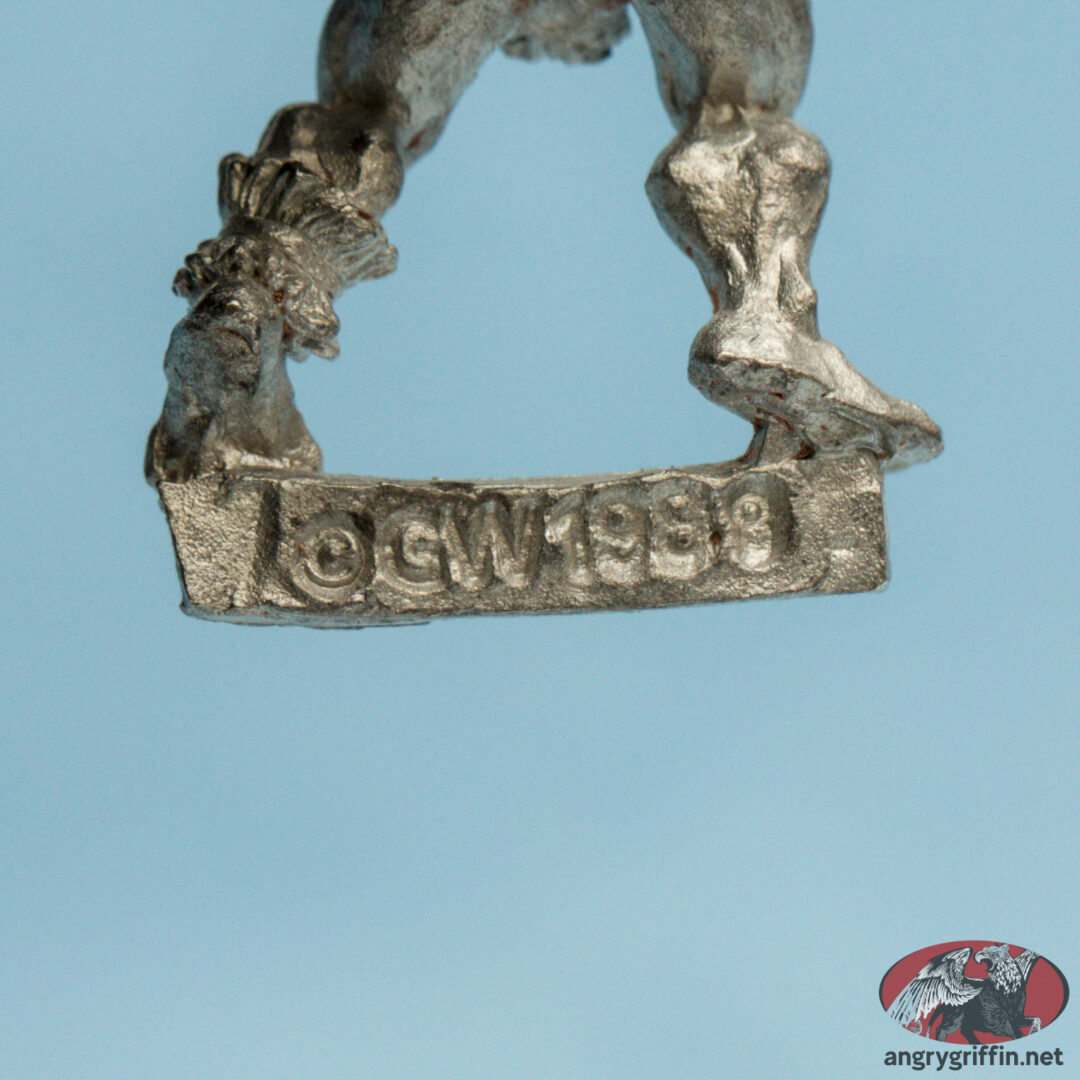 This metal miniature was called Pilot Lorgar and was from the RT601 Adventurers range from the Rogue Trader era of Warhammer 40K. It’s a Trish Carden sculpt from 1988.