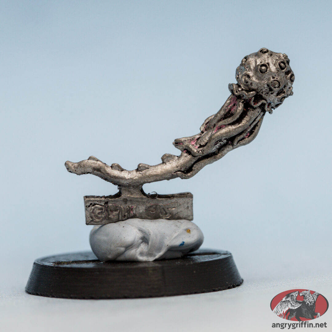 This is one of the Tyranid Spore Mines from the Warhammer 40K 2nd. Ed. game. It’s a 1995 Michael Perry sculpt as per the 1997 catalogue.